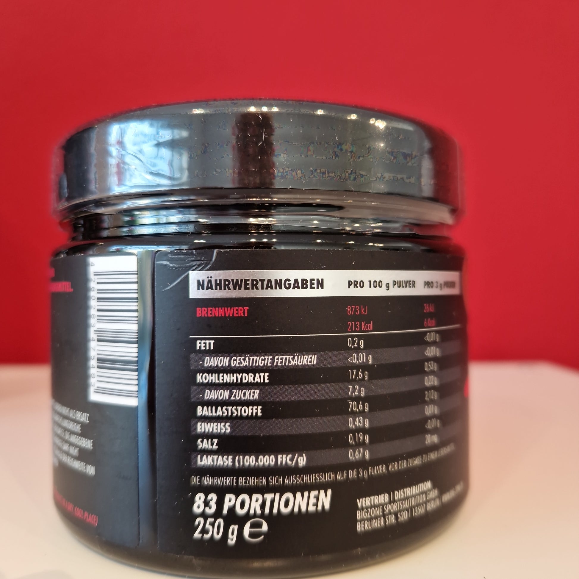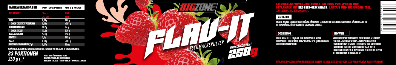 Ergänzt wird das Big Zone Flav It durch satte 2000 FCC-Einheiten Laktase pro Portion. Diese Menge reicht aus, um etwa 10 g Milchzucker zu spalten und damit genau die Menge, die beispielsweise in 250 g Magerquark oder 200 ml Milch enthalten ist. Somit wird Dein Essen nicht nur leckerer, sondern auch besser verträglich!