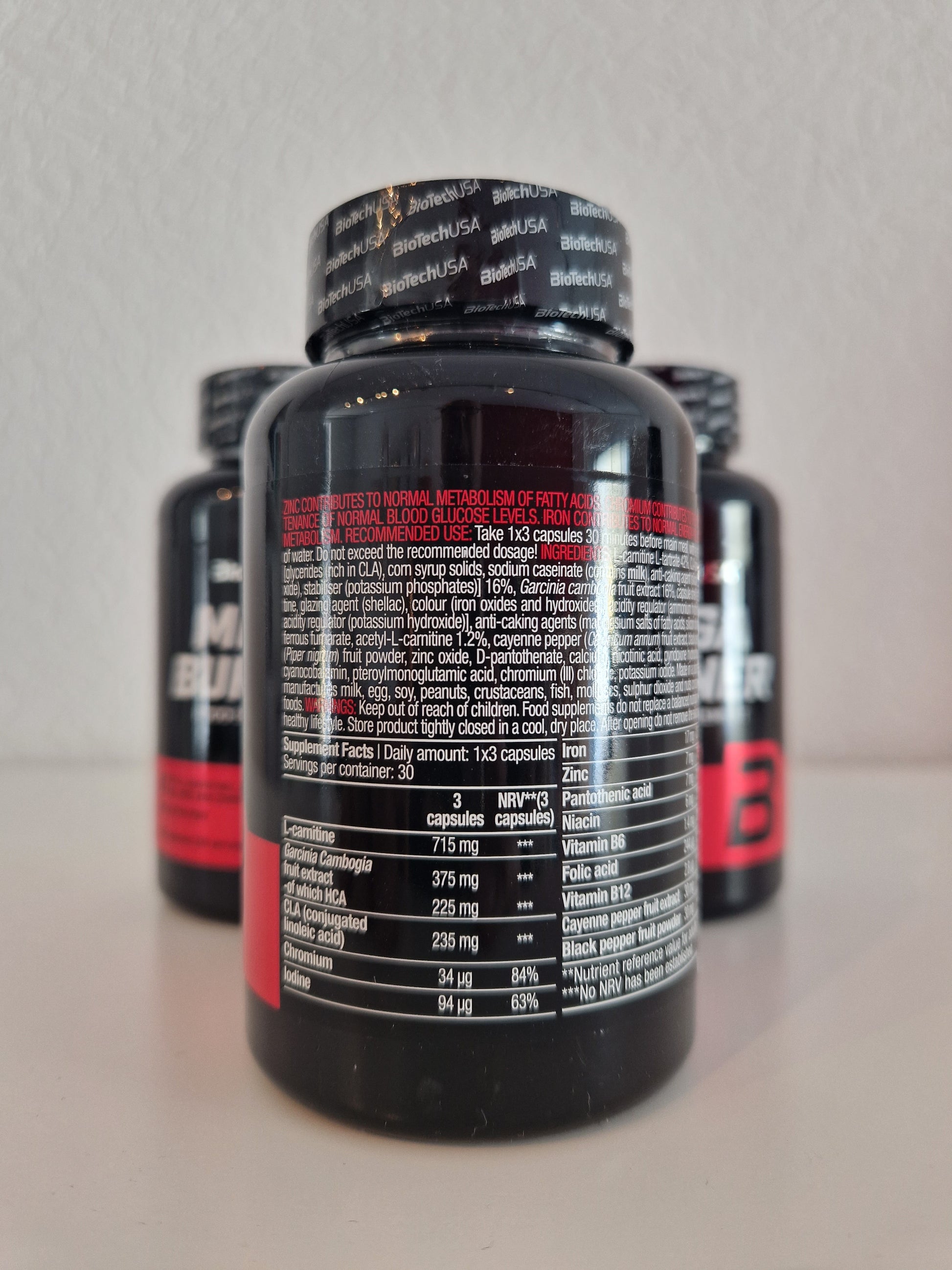 *Referenzmenge der empfohlenen Tagesdosis für Erwachsenen. **Wert von NRV wurde nicht bestimmt. Was enthält BioTechUSA Mega Burner?1 Portion (3 Kapseln) enthält: