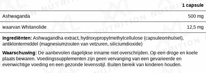 Jede Kapsel enthält 500 mg Ashwagandha-Pulver. Es ist empfehlenswert, zweimal täglich eine Kapsel zu den Mahlzeiten einzunehmen.