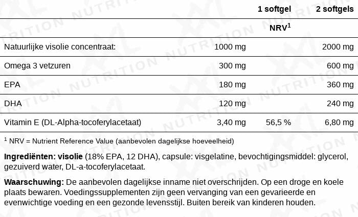 Aufgrund der steigenden Nachfrage nach Omega-3-Nahrungsergänzungsmitteln gibt es zahlreiche Marktteilnehmer, die unreines Omega-3-Öl verkaufen. Diese sind viel billiger, aber voller unsichtbarer Metallpartikel, die vom Fisch aufgenommen wurden. Mit Omega 3 Fischöl von XXL Nutrition können Sie sicher sein, dass Sie die reinsten Fettsäuren erhalten. Um diese Qualität sicherzustellen, testen wir jede Charge Fischöl auf Kontamination aufgrund des Vorhandenseins von Schwermetallen und PCB und treten erst dann in den Markt ein, wenn alle Werte innerhalb der Referenz liegen. Auf diese Weise können Sie sicher sein, dass Sie immer das reinste Omega 3 verwenden. Den ausführlichen Bericht finden Sie hier.